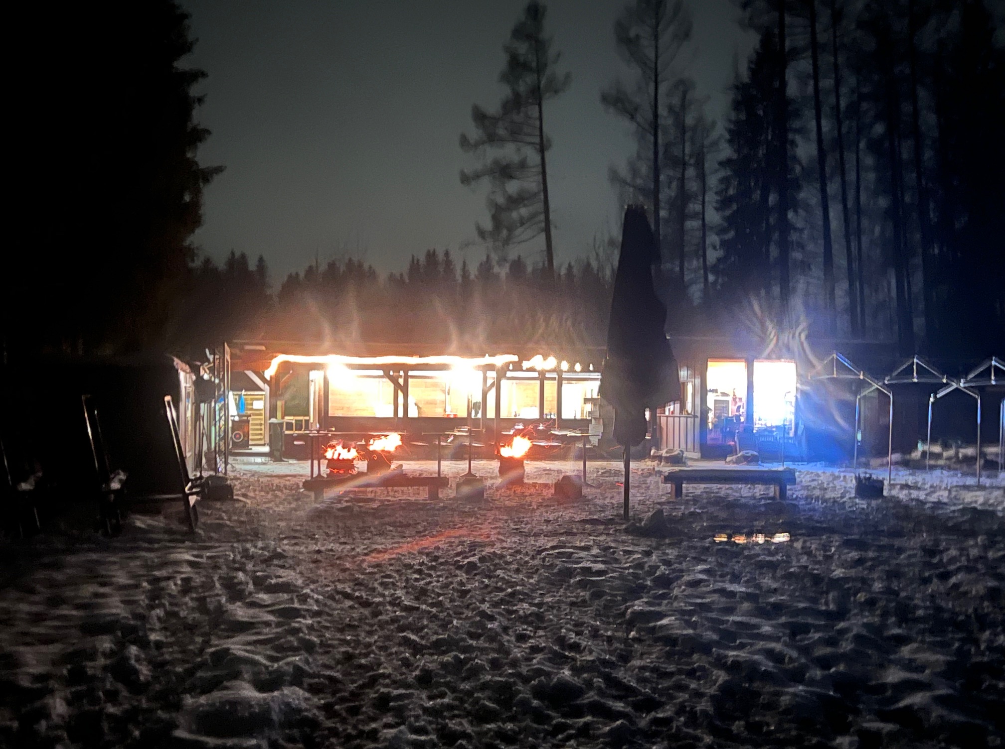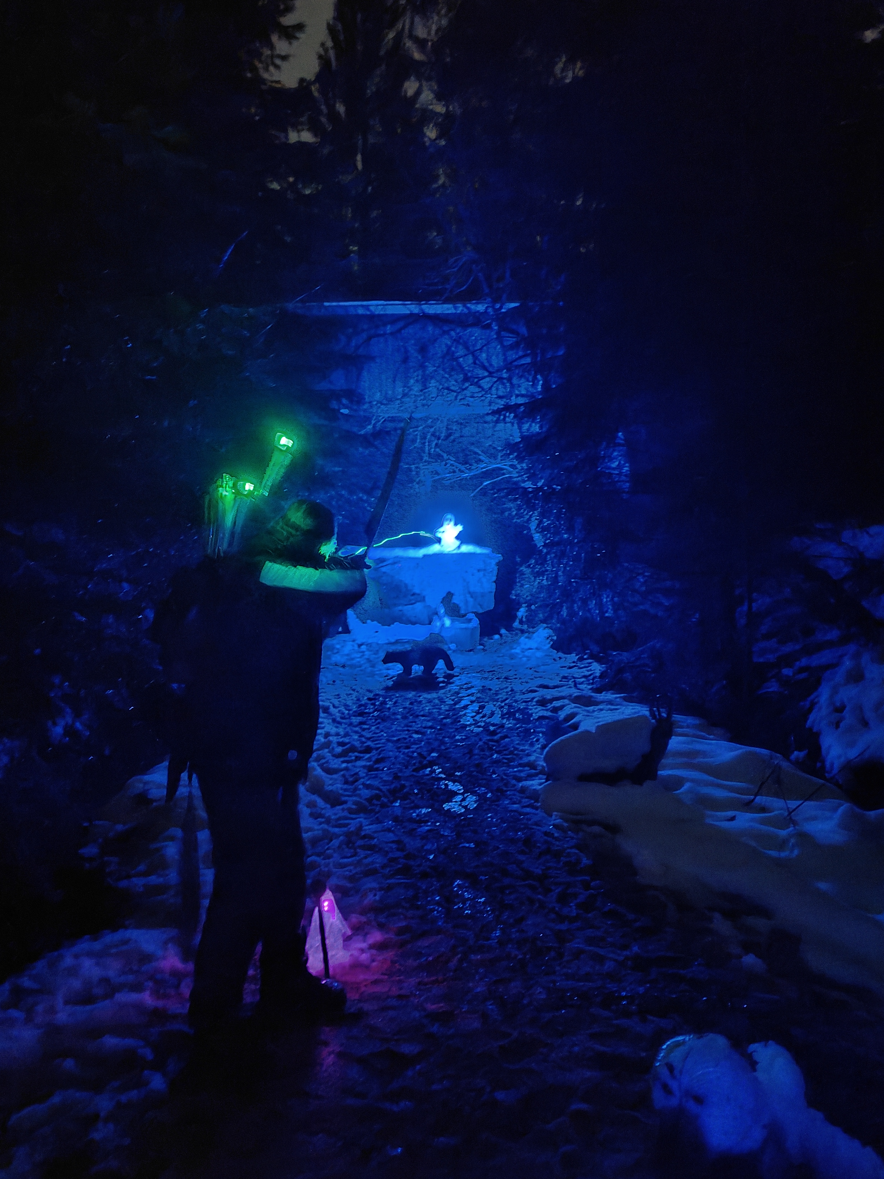 Allerdings sind die Bäume durch Schnee und Eislasten derart belastet, dass es bereits zu Schneebruch und umstürzenden Bäumen gekommen ist. Mehrere Bäume stehen schräg und drohen umzufallen. Der Parcours ist derzeit dadurch nicht begehbar.