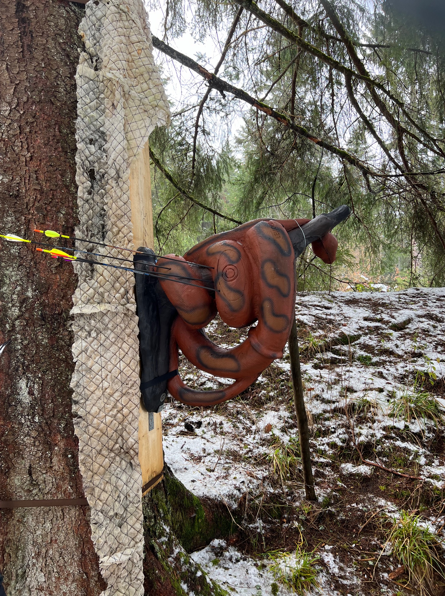 Wir haben es geschafft und weitestgehend den Parcours wieder instand gebracht. Nicht alle querliegenden Bäume konnten wir wegräumen, es haben sich aber dadurch neue interessante Schüsse ergeben.